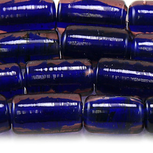 Beads, Glass Beads, 15x9mm Tube Colourlined, PURPLE/BLUE