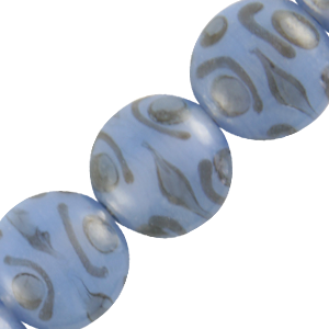 Designer Glass Beads with a unique pattern. These handmade beads are great for bracelets or necklaces or they lie flat and combine very well with crystal or other glass and metal beads. They may also vary in size.