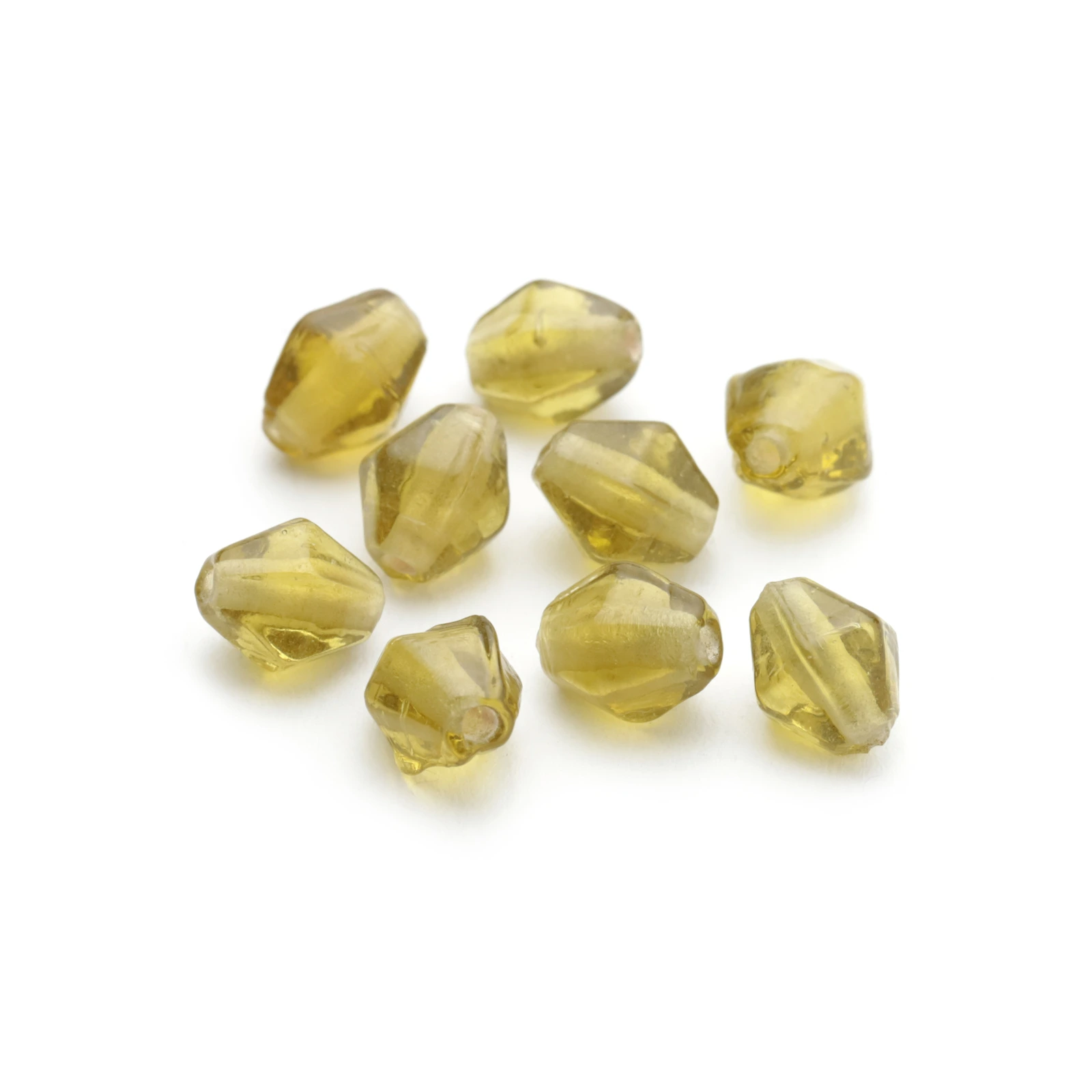 Sold Per: 25 grams (approx. 75 beads) Colour Cat: Green Shape: Bicone Size: 8mm Finish: Transparent SKU: 39-0605