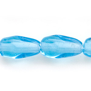 Beads, Glass Beads, 13x6mm Drop Twist Transparent, AQUA