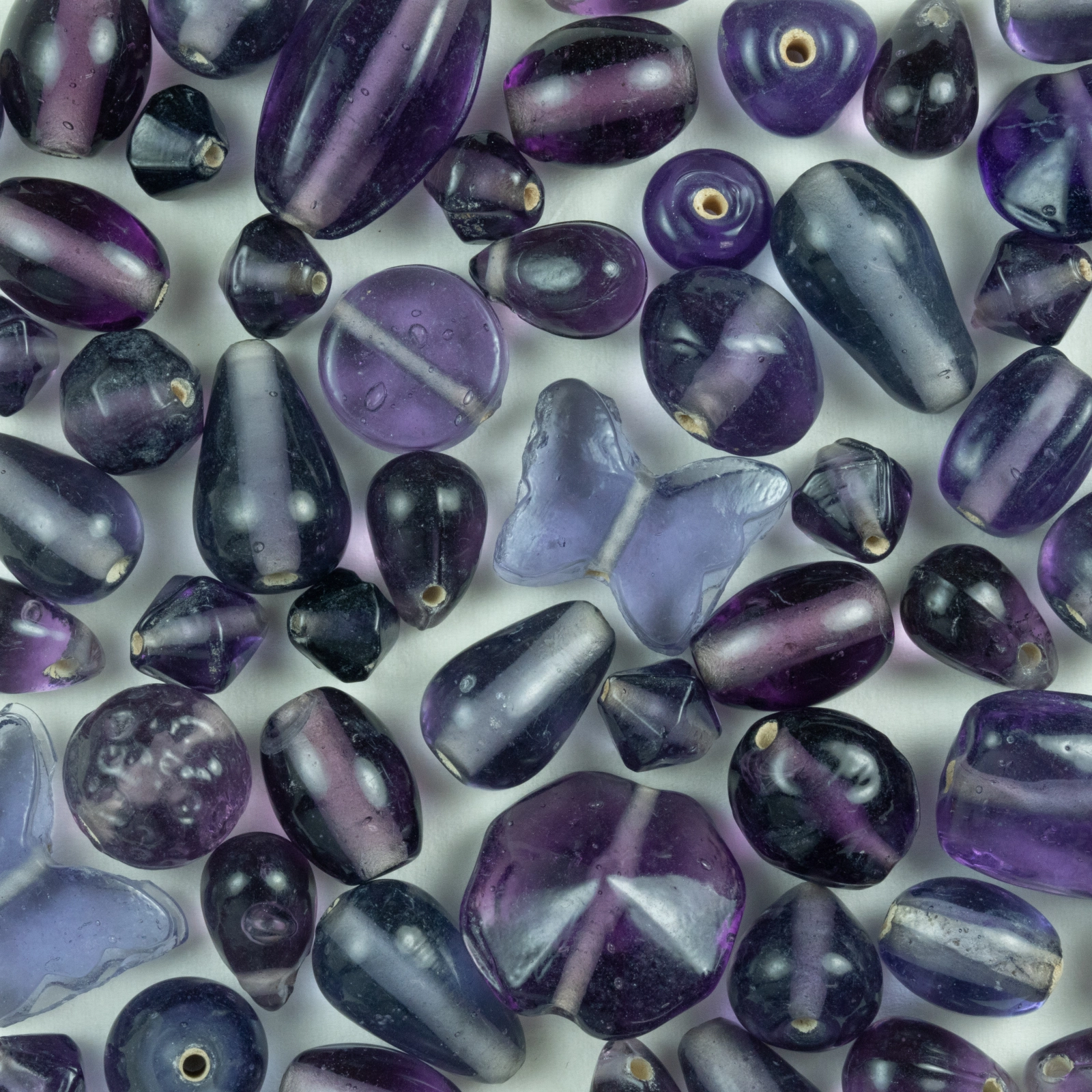 Beads, Mixed Shapes, Transparent, VIOLET sizes range from 4-16mm (hole size approx 2-2.4mm)