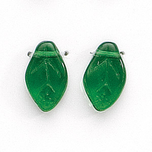 Bead, Preciosa Czech Pressed Glass, 12x7mm Leaf – Transparent Emerald Green (Thickness 3.25mm, Hole Size 1.1mm)