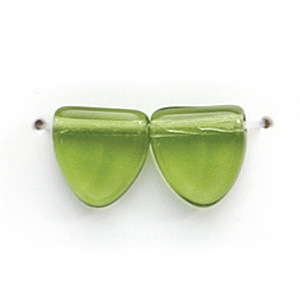 Bead, Preciosa Czech Pressed Glass, 9mm Drop Triangle – Transparent Olive Green (Thickness 3.5mm, Hole Size 0.9mm)