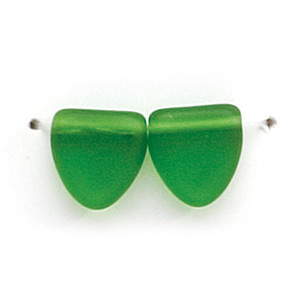 Bead, Preciosa Czech Pressed Glass, 9mm Drop Triangle – Transparent Matte Emerald (Thickness 3.5mm, Hole Size 0.9mm)