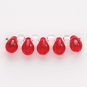 Bead, Preciosa Czech Pressed Glass, 5x7mm Drop – Transparent Red (Hole Size 0.9mm)