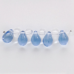 Bead, Preciosa Czech Pressed Glass, 5x7mm Drop – Transparent Light Sapphire (Hole Size 0.9mm)