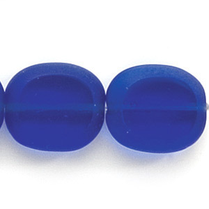 Bead, Preciosa Czech Pressed Glass, 14x12mm Flat Oval bead with Matte Edge – Transparent Dark Capri Blue (Hole Size 1.3mm)