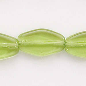 Bead, Preciosa Czech Pressed Glass, 14x8mm Flat Oval Pointed Bead – Transparent Olivine (Hole Size 1.3mm)