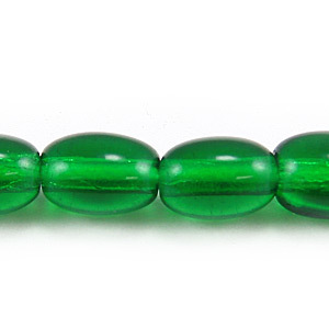 Bead, Preciosa Czech Pressed Glass, 7x5mm Oval Bead – Transparent Emerald (Hole Size 1.2mm)