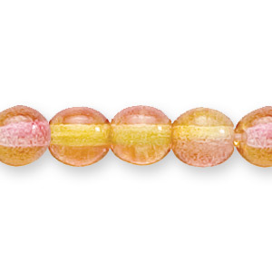 Bead, Preciosa Czech Pressed Glass, 6mm Round Bead – Two-Tone Yellow/Fuchsia (Hole Size 0.7mm)