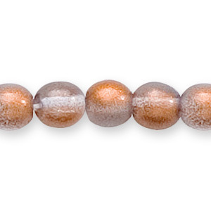 Bead, Preciosa Czech Pressed Glass, 6mm Round Bead – Two-Tone Copper/Lt. Sapphire (Hole Size 0.7mm)