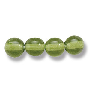 Bead, Preciosa Czech Druk Glass, 6mm Round Bead – Transparent Olive Green (Hole Size 1.1mm)