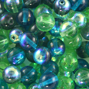 Bead, Preciosa Czech Druk Glass, 8mm Round Bead – Transparent AB Blue/Green (Hole Size 1.1mm)