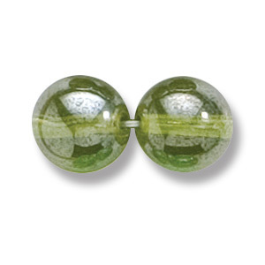 Bead, Preciosa Czech Druk Glass, 10mm Round Bead – Transparent Light Olive Green with Lustre Finish (Hole Size 1.1mm)