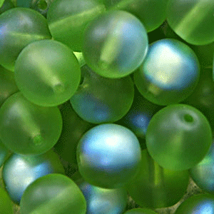 Bead, Preciosa Czech Druk Glass, 6mm Round Bead, Peridot with Matte Finish and AB coating (Hole Size 1.1mm)