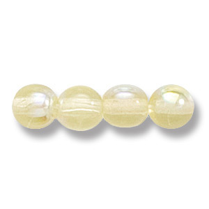 Bead, Preciosa Czech Druk Glass, 6mm Round Bead, Transparent Light Yellow with AB coating (Hole Size 1.1mm)