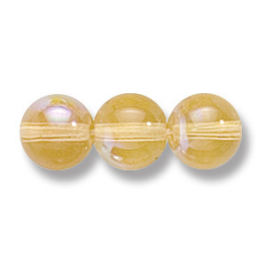 Bead, Preciosa Czech Druk Glass, 8mm Round Bead, Transparent Pale Topaz with AB coating (Hole Size 1.1mm)
