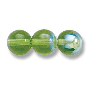 Bead, Preciosa Czech Druk Glass, 8mm Round Bead, Transparent Light Olive Green with AB coating (Hole Size 1.1mm)