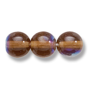 Bead, Preciosa Czech Druk Glass, 8mm Round Bead, Transparent Dark Smoke Topaz with AB coating (Hole Size 1.1mm)