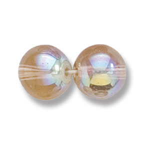 Bead, Preciosa Czech Druk Glass, 10mm Round Bead, Transparent Light Smoke Topaz with AB coating (Hole Size 1.1mm)