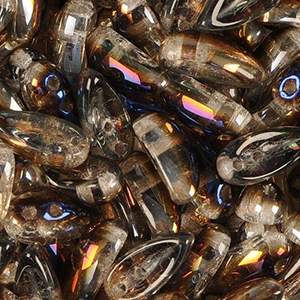Preciosa Czech Chilli Beads, Elongated shape complements the popular fantasy series of two-hole beads, with which it has the same pitch holes. Axial displacement of the two location holes predetermine this bead with simple folding as a zipper with a conventional sleeve on the rigid or flexible material, wherein the ridge of the bead perfectly fits into lateral recess of the side bead. Flattened shape and lateral orientation of the holes allows to create a flat relief applications in combination with round beads and pearls up to 4 mm.