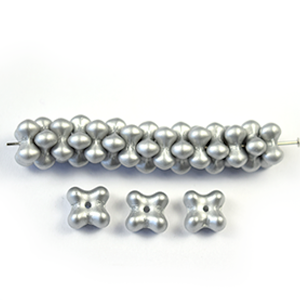 Bead, Czech Glass Nesting Bead, 4x7mm Quatrefoil – Metallic Silver