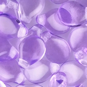 Sold Per: 5 strand (40 beads/strand) Colour Cat: Purple Shape: Drop Size: 7mm Finish: Transparent SKU: 40-P01123