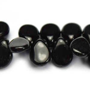 Sold Per: 5 strand (40 beads/str) Colour Cat: Black and White Shape: Drop Size: 7mm Finish: Opaque SKU: 40-PO23980