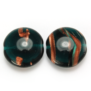 Bead, Preciosa Czech Pressed Glass, 18x8mm Puffy Disc with Goldstripe – Transparent Teal (Thickness 6.85mm, Hole Size 1.2mm)