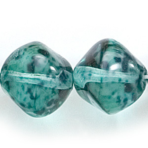 Bead, Preciosa Czech Pressed Glass, 14mm Baroque Style – Transparent Green with Speckles (Hole Size 1mm)