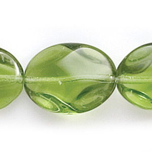Bead, Preciosa Czech Pressed Glass, 16x12mm Flat Oval Baroque Shape – Transparent Light Olivine (Hole Size 1mm)