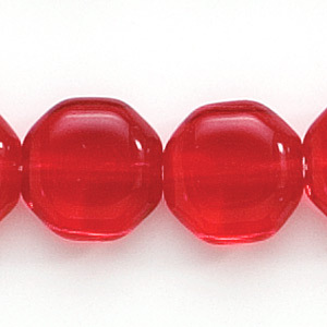 Bead, Preciosa Czech Pressed Glass, 12mm Octagonal Shape – Transparent Red (Hole Size 1.3mm)