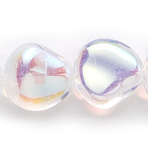 Bead, Preciosa Czech Pressed Glass, 15x14mm Nugget – Crystal with AB cotaing (Thickness 6mm, Hole Size 1.2mm)