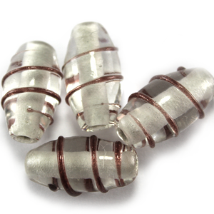 Bead, Lampwork Glass, 17x10mm Oval shape with raised colorline – Crystal (Hole Size 2mm)