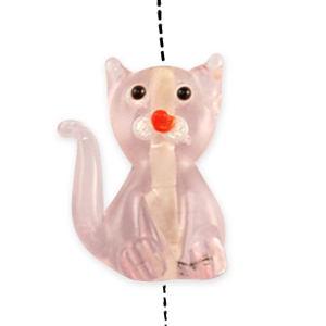 Bead, Handmade Glass, 20mm Cat Shape – Pink (Hole Size 2mm)