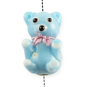 Bead, Glass Bear – 20mm Hole Size 2mm – Powder Blue & Pink