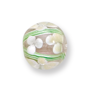 Bead, Lampwork Glass, 12mm Round, handcrafted with Flower and Green Vine design on Crystal (Hole Size: 2mm)