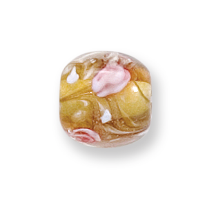 Bead, Lampwork Glass, 12mm Round with Rose design on Topaz (Hole Size 2mm)