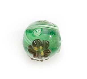 Bead, Lampwork Glass, 10mm Round shape with a raised Flower pattern on Emerald color bead (Hole Size 2.6mm)