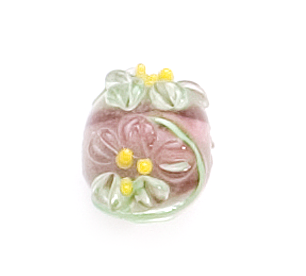 Lampwork Glass Beads, round shape in a gorgeous design with a raised flower pattern all around the bead, making the bead very special.