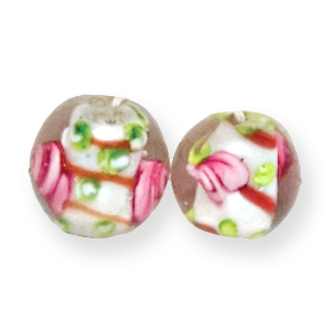 Lampwork Glass Beads with a White Center and a gorgeous design inside in a Rose pattern, giving the bead an amazing appearance.