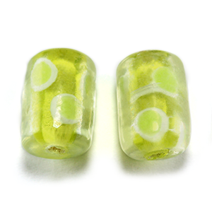 Bead, Lampwork Glass, 15x11mm Tube with Spotted – Chartreuse (Hole Size 2.5mm)