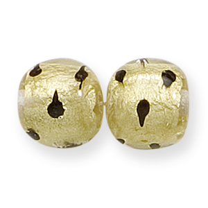 Bead, Lampwork Glass, 13mm Round shape in Crystal Glass lined with Goldfoil and Splashes of Black Color (Hole Size 2.5mm)