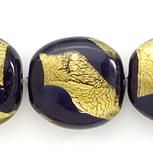 Bead, Lampwork Glass, 18mm Puffed Disc Lined with Goldfoil and Cobalt color (Hole Size 2.5mm)