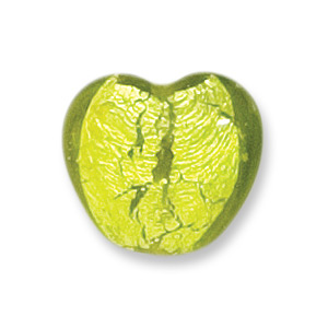 Bead, Lampwork Glass, 18mm Silverfoil Heart – Chartreuse (Hole Size 2.5mm)