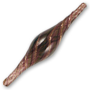 Bead, Handblown Lampwork Glass Bead, 64x14mm Oval Pipe with color stripes – Amethyst/Violet/Green/Gold Foil (Hole Size 2mm) Made in Japan