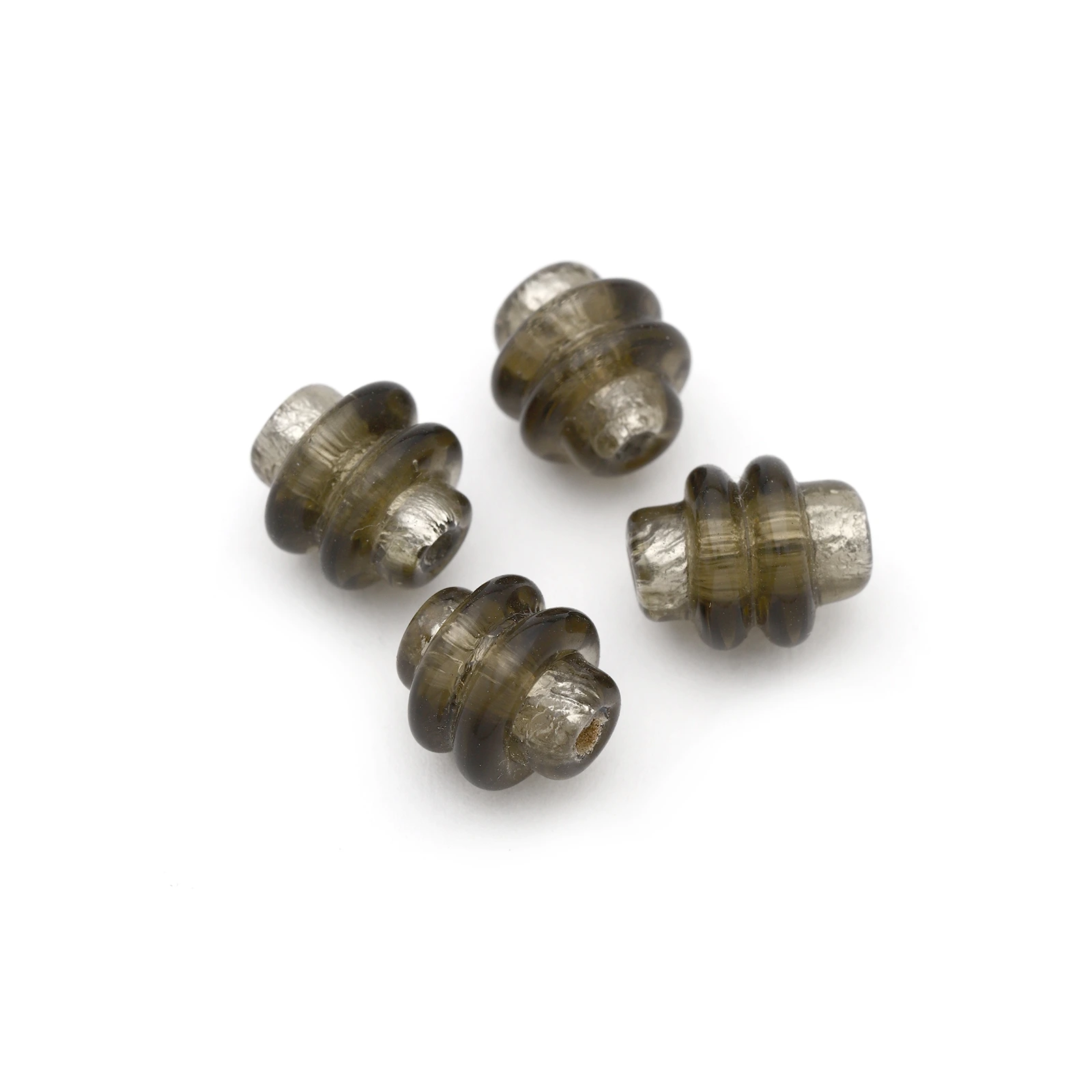 Bead, Japanese Sassoon Lampwork Glass,10mm Ringed Tube with Silverfoil – Grey (Hole Size 1.6mm)