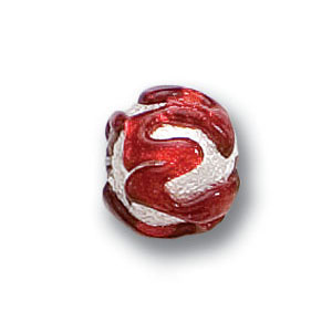 Bead, Japanese Sassoon Lampwork Glass, 10mm Round Red color bead with Silverfoil Drizzle (Hole Size 1.6mm)