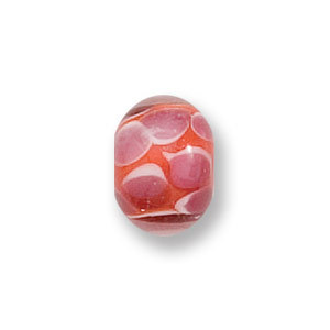 Bead, Japanese Sassoon Lampwork Glass, 9x12mm Rondelle with Drop and stripe patterns – Orange/Rose (Hole Size 1.4mm)
