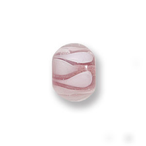 Bead, Japanese Sassoon Lampwork Glass, 9x12mm Rondelle with Drop and stripe patterns – Rosaline/White (Hole Size 1.4mm)